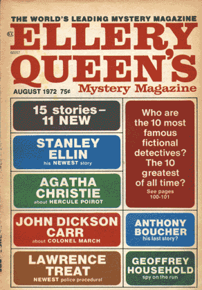 This is the most successful story I ever wrote and the only one I ever dreamed. I woke up one night with the entire plotline crystal clear in my mind, grabbed pen and paper and scrawled it all down ... then spent eight months writing and revising and rerevising before I finally gave up and sent it to Fred Dannay at EQMM, figuring he'd tell me what was wrong and how to make it work. To my surprise, he bought it pretty much as it was.