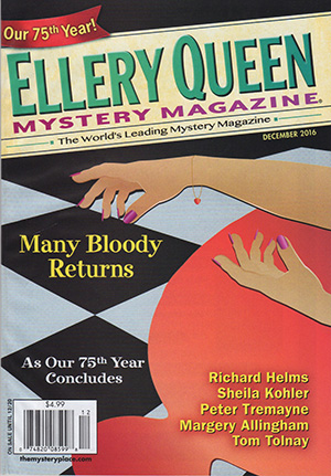 EQMM's anniversary year came to a close with this story, the last one in the final issue of 2016. Hilde is the first Belgian to appear twice in the magazine's "Passport to Crime" department, and the third author I've translated for Queen's more than once. (The first two were Janwillem van de Wetering and René Appel, both Dutch.)