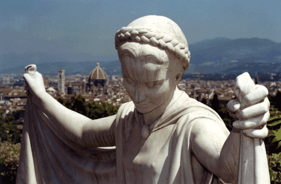 Florence is my single favorite place on the planet. It is home to my favorite piece of art (Michelangelo's last Pieta), my favorite restaurant (Anita's), my favorite ice cream (Vivoli's), my favorite view (this one, of the Duomo framed by a sculpture by some anonymous artist in the graveyard in front of San Miniato al Monte), my favorite public square (the Piazza della Signoria) and it's within easy reach of many other places I love, such as Fiesole, Pisa, the Mediterranean Sea, San Gimignano, Siena, Volterra, the Apuan Alps. It's also where I discovered the magnificent works of British sculptor Henry Moore, and home to an incredible concentration of fabulous art museums (the Uffizi Galleries, the Bargello, the Accademia dell'Arte) ... and there's the Ponte Vecchio, and Forte Belvedere, and one of the three most beautiful synagogues in Europe (the others are in Amsterdam and of all places Sofia, Bulgaria!), and the "Gates of Heaven" outside the Baptistry, and on and on and on. Summer is not the best time of year to visit the city is absolutely mobbed with tourists but, at any time of year, Firenze é la cittá piu bellissima del mondo!