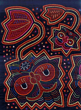 I saw my first molas in 1977, when I lived and worked briefly in New Orleans. I used to go down to the Cafe du Monde in the French Quarter of a morning for chicory coffee and beignets, and one day I ran into a young guy who'd just returned from several months in the San Blas islands, off the coast of Panama, with a huge assortment of these colorful fabric artworks, handmade by women of the Kuna Indian tribe. I bought two of them (for an absurdly low price; this was before they became popular in the US), but left one with Lydia when we got divorced and lost the other in my move from Germany back to the US.