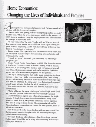 In July of 1993, Becca and I spent a weekend at Single Parent Family Camp, sponsored by the Ohio State University Extension and held at 4-H Camp Palmer in western Ohio. The following year, we were selected as a "typical" SPFC family and featured in the OSU Extension's annual report.